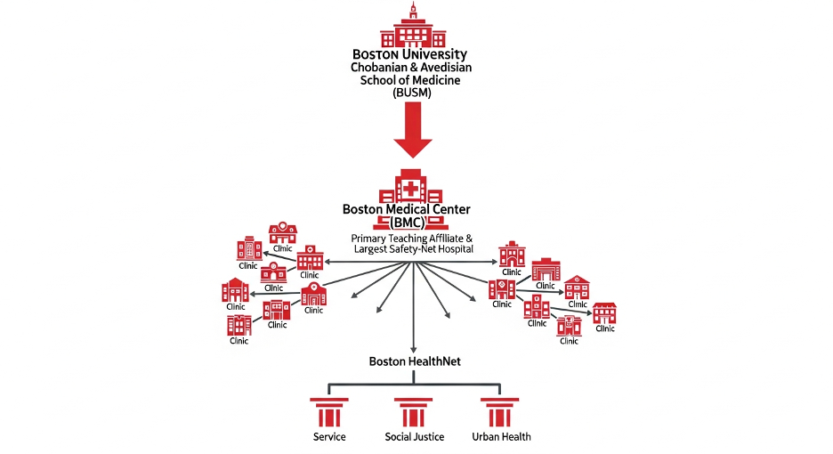 The BUSM ecosystem is deeply integrated with its community through Boston Medical Center and the Boston HealthNet.