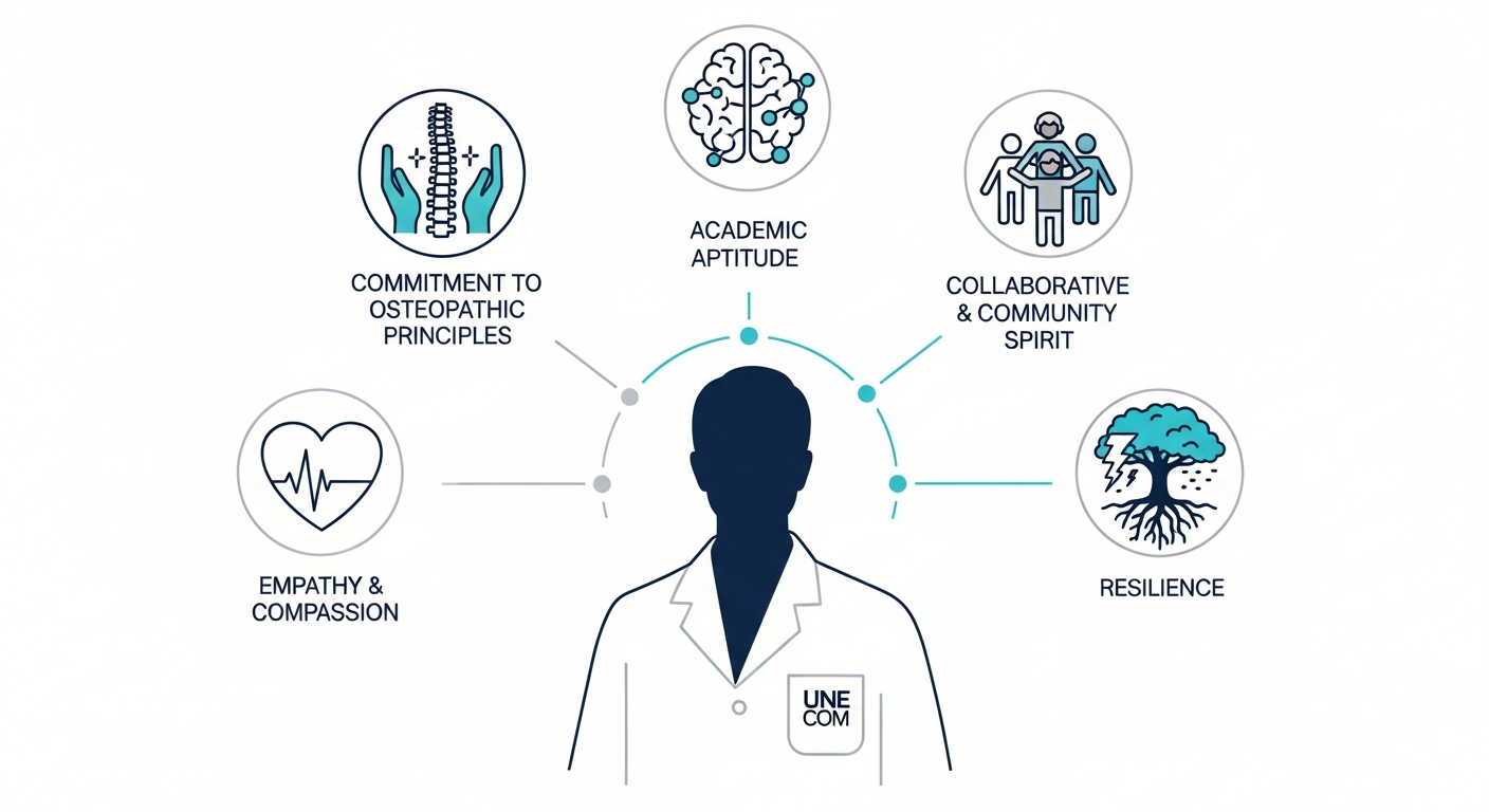 The University of New England College of Osteopathic Medicine (UNECOM) seeks applicants who are compassionate, community-driven, and deeply aligned with osteopathic principles. Rooted in service to rural and underserved populations across New England, UNECOM values students who demonstrate initiative, authenticity, and a sincere understanding of the school’s mission.